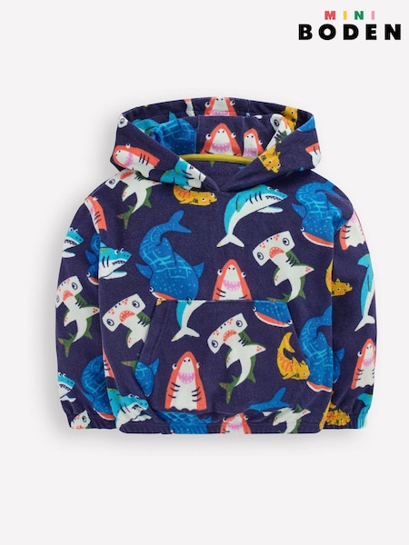 Boden Blue Towelling Pop-over Hoodie