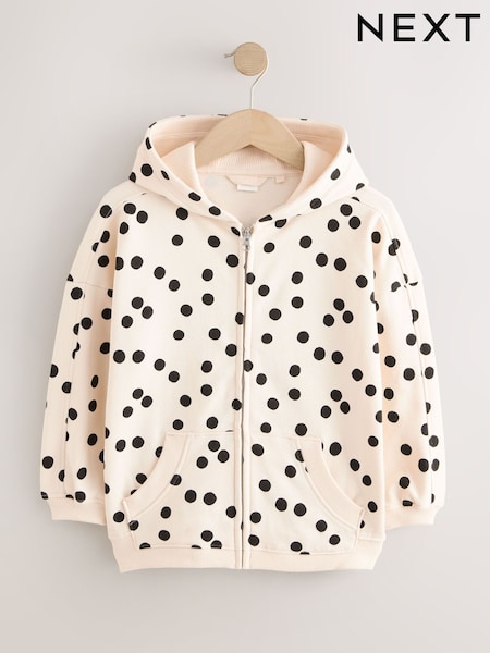 White/Black Spot Zip Through Hoodie (3-16yrs)