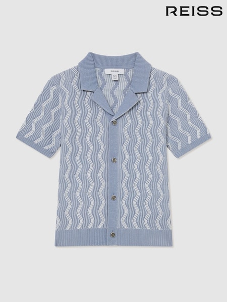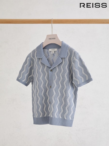 Reiss Off White/Light Camel Victor Cotton Textured-Knit Striped Shirt