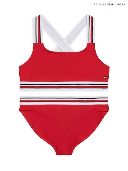 Tommy Hilfiger Red Global Stripe Bralette Bikini Set