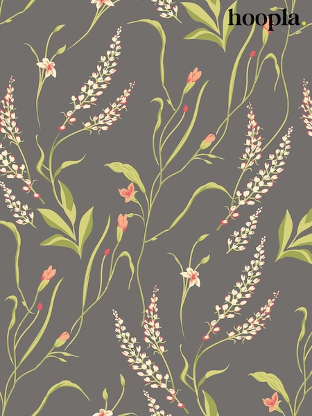 Hoopla Walls Charcoal Coral Springtime Meadow Wallpaper A4 Sample