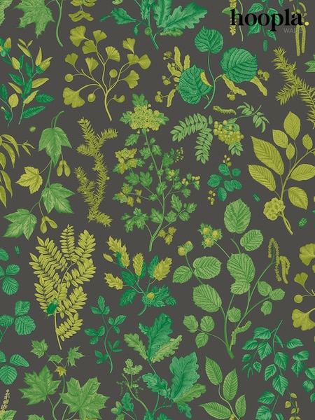Hoopla Walls Charcoal Emerald Botanical Leaves A4 Wallpaper Sample