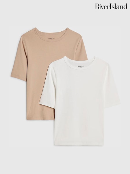 River Island Mocha/White Short Sleeve Crew Neck T-Shirts 2 Pack