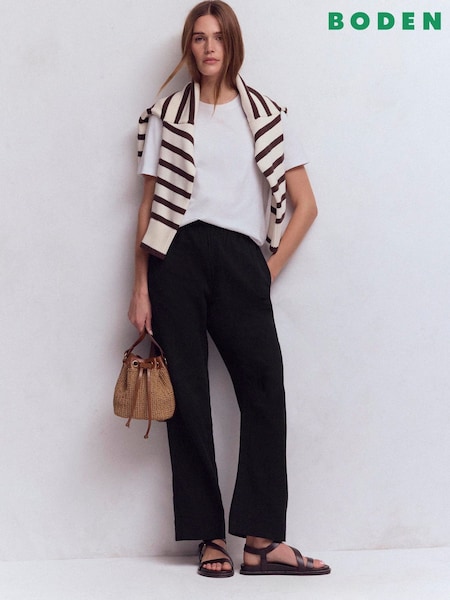 Boden Black Kensington Linen Trousers