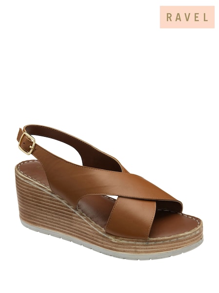 Ravel Brown Cross Over Leather Wedge Sandals
