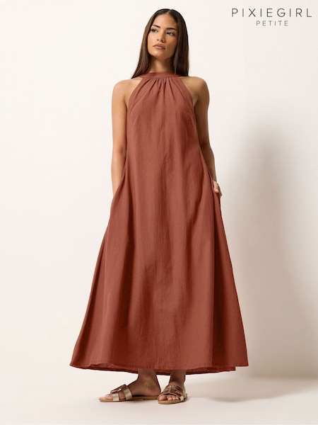PixieGirl Petite Brown Linen Blend Halterneck Maxi Dress