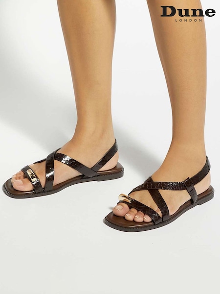 Dune London Brown Standard Fit Leather Landies Cross Strap Comfort Flat Sandals