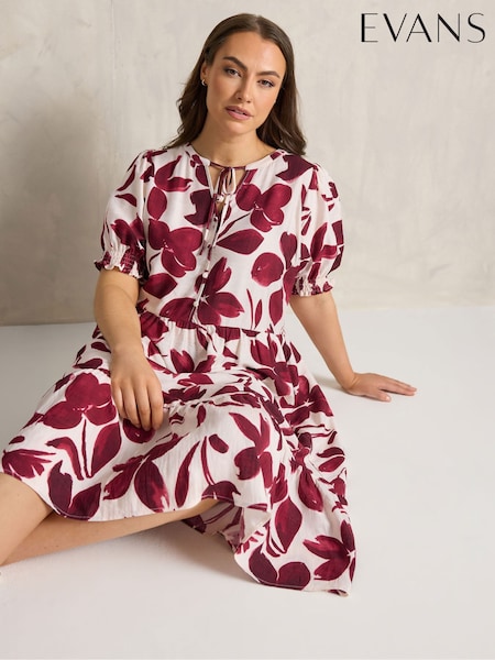Evans Red Tiered Slub Cotton Midi Dress