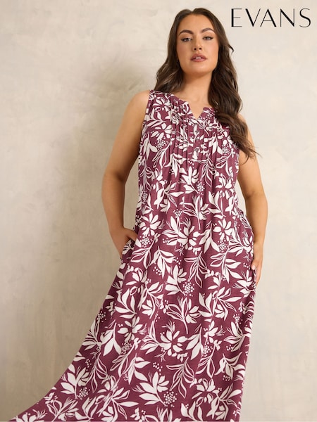 Evans Red Premium Linen Abstract Print Maxi Dress