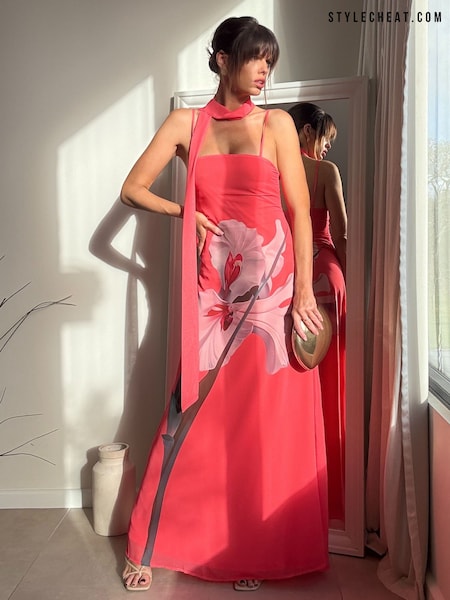 Style Cheat Pink Placement Scarf Print Dress