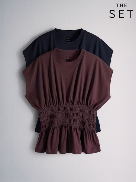 The Set 2 Pack Smocked Waisted Tops Light Navy Blue/Burgundy