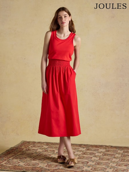 Joules Jade Red Sleeveless Jersey Woven Midi Dress