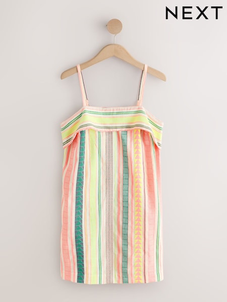 Rainbow Stripe Short Sleeve Button Through Dress (3-16yrs)