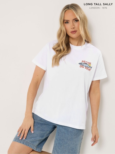 Long Tall Sally White Sardine Graphic Oversized T-Shirt