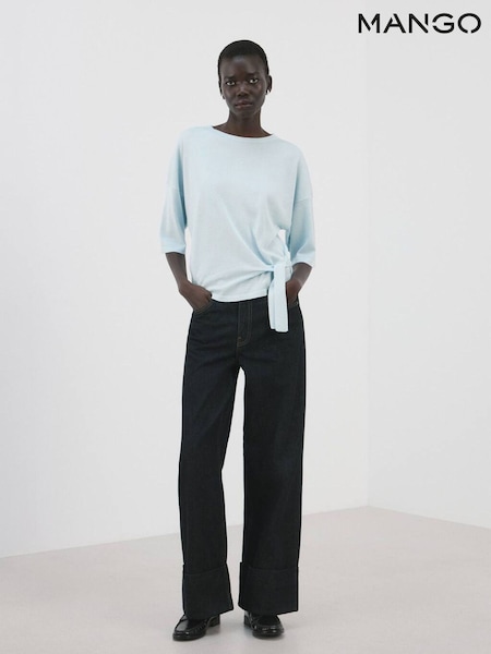 Mango Blue Tie Front Knitted T-Shirt