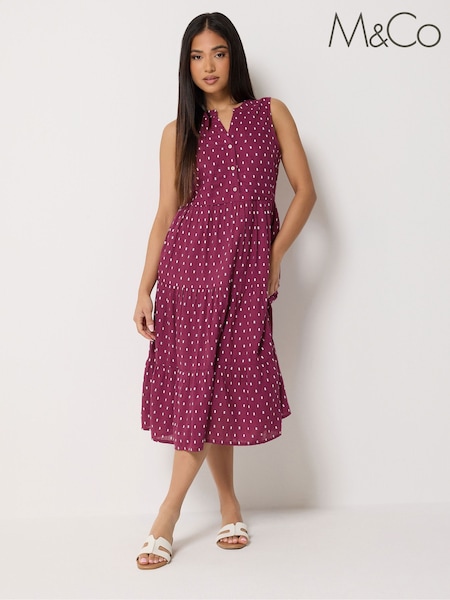 M&Co Red Petite Sleeveless Dobby Dress