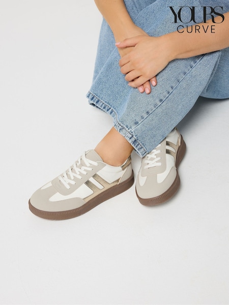 Yours Curve Natural E Wide Fit Side Stripe Lace Up Trainers