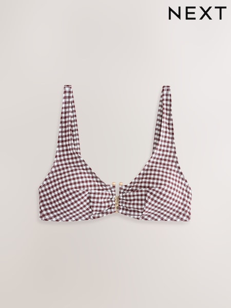 Chocolate Brown Gingham Crop Bikini Top