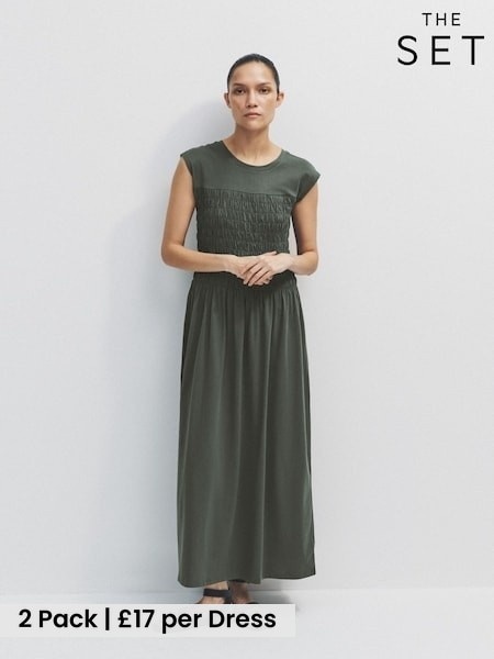 The Set 2 Pack Shirred Maxi Jersey Dresses Khaki Green/Black