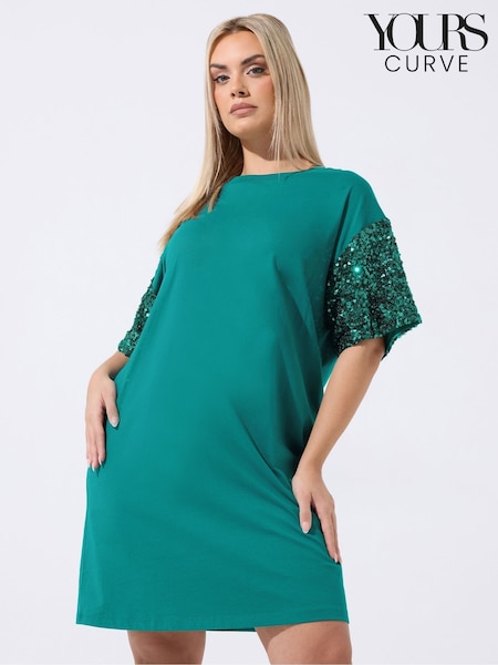 Yours Curve Green Limited Sequin Sleeve Mini Dress