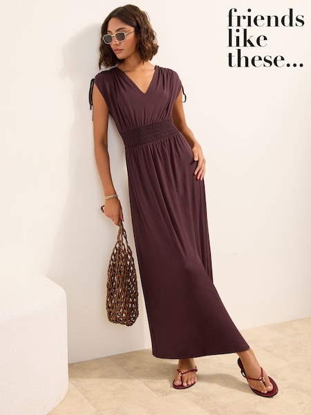 Friends Like These Chocolate Brown V-Neck Shirred Waist Jersey Maxi Dress