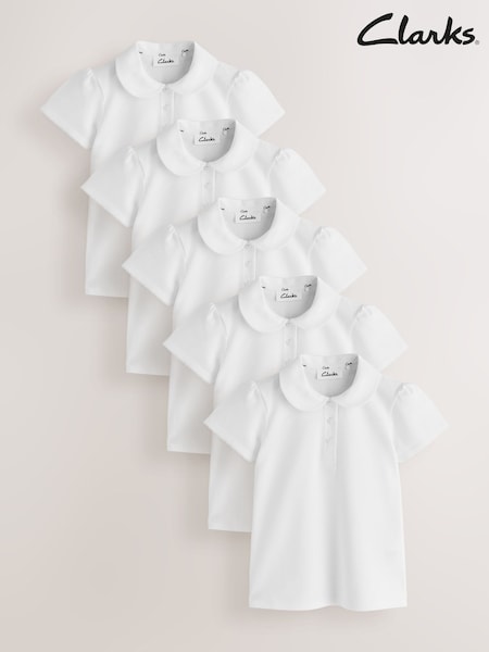 Clarks White Short Sleeve School Polo Shirts 5 Pack