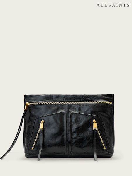 AllSaints Black Bettina Panel Clutch