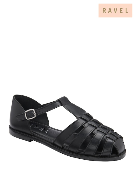 Ravel Black Leather Fisherman Sandals