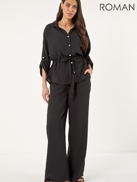 Roman Black Safari Tie Front Shirt