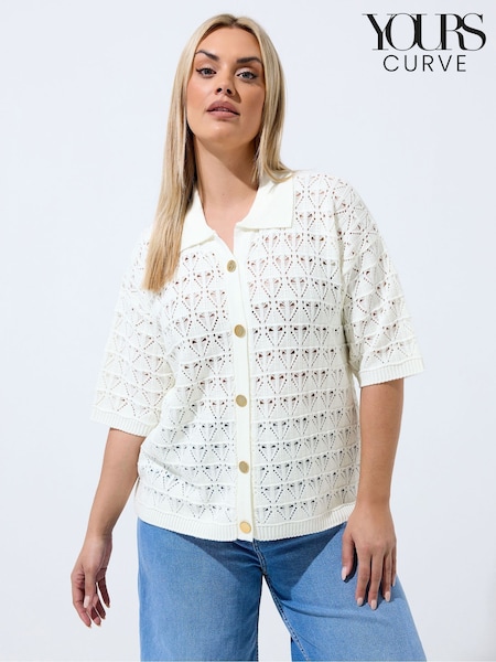 Yours Curve Cream Mix Stripe Crochet Shirt