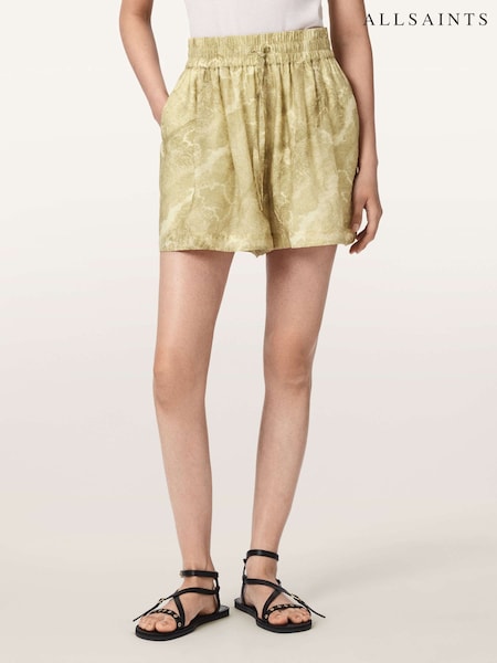 Olive Green Jacquard Towelling Fringe Summer Shorts