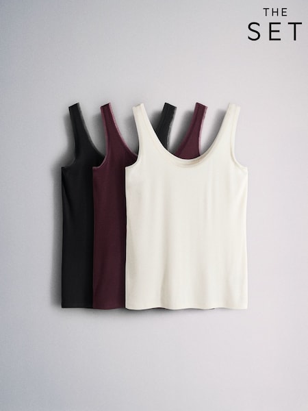 The Set The Set 3 Pack Mesh Trim Vests Dark Navy/Burgundy/Neutral