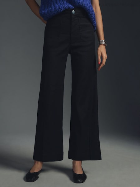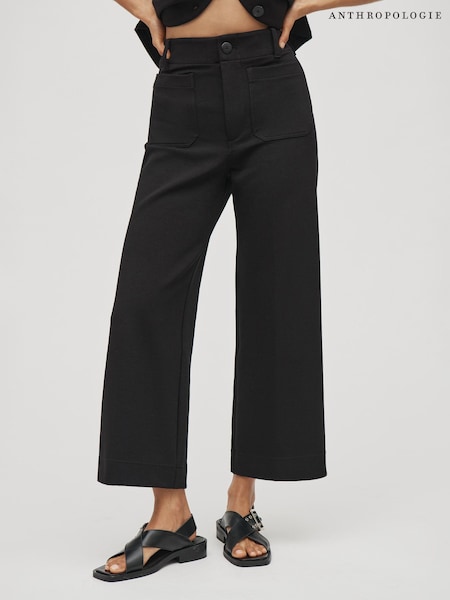 Anthropologie Maeve The Colette Cropped Wide-Leg Black Trousers