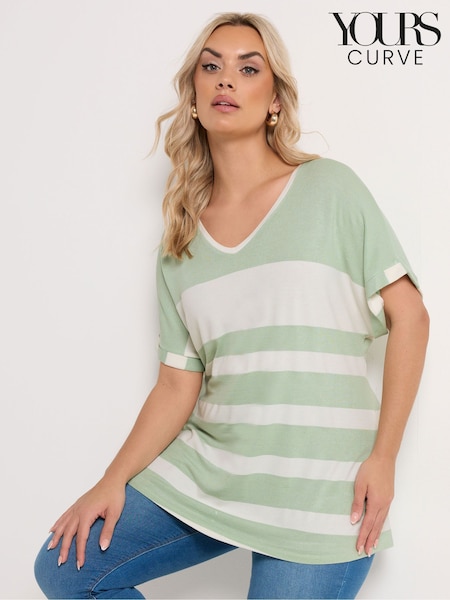 Yours Curve Green Stripe Yoke Detail T-Shirt