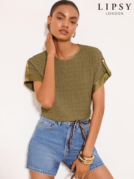 Lipsy Khaki Green Textured Tab Detail T-Shirt