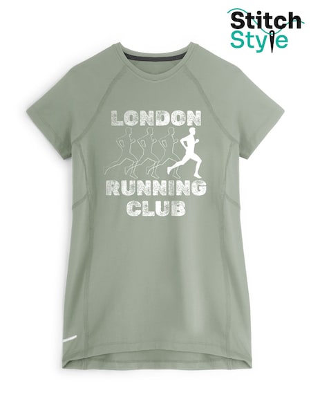 Personalised 'Running club' Sage Green Short Sleeve T-Shirt By Stitch Style.