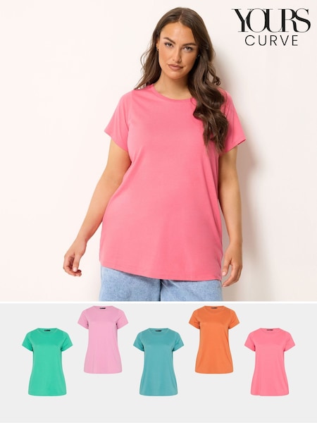 Yours Curve Pink Short Sleeve Core Summer T-Shirts 5 Pack