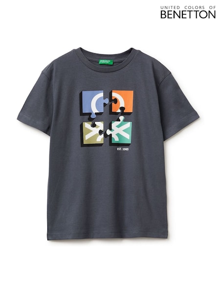 Benetton Grey Short Sleeve Logo T-Shirt