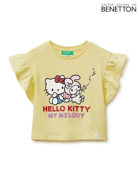 Benetton Yellow Flutter Sleeve Printed T-Shirt