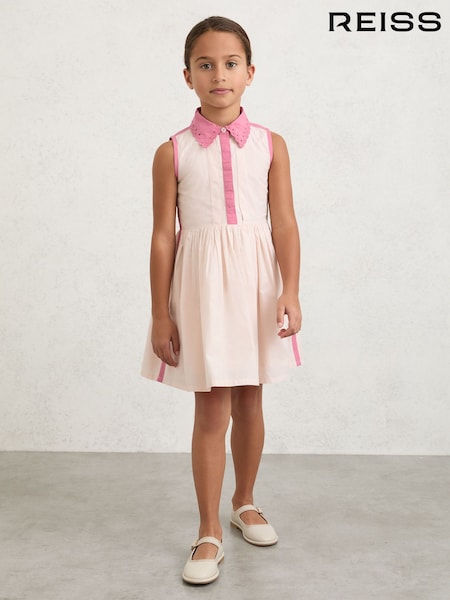 Reiss Light Pink Odela Cotton Contrast-Trim Collared Dress