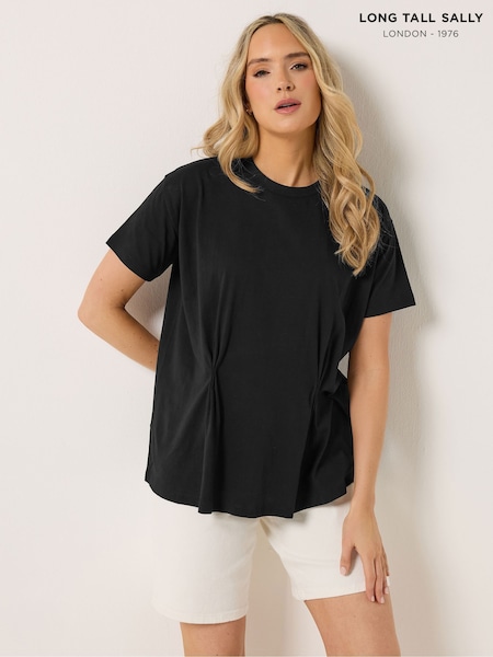 Long Tall Sally Black Pleated Front Short Sleeve T-Shirt