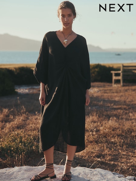 The Set 2 Pack Tie Waist Dresses With Linen Black/Stone