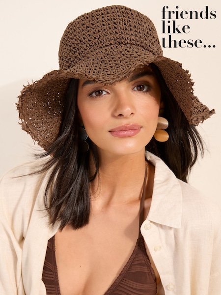 Friends Like These Chocolate Brown Fringe Raffia Bucket Hat