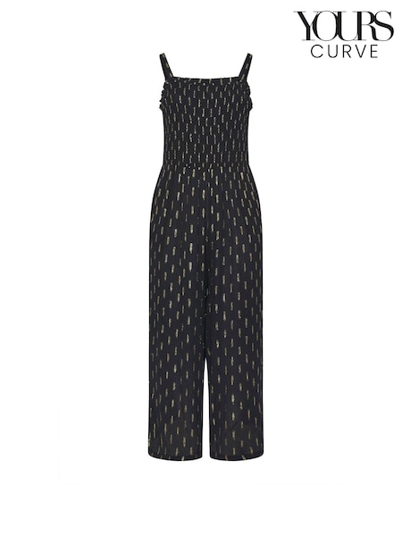 Yours Curve Black Crickle Metallic Wide Leg Jumpsuit
