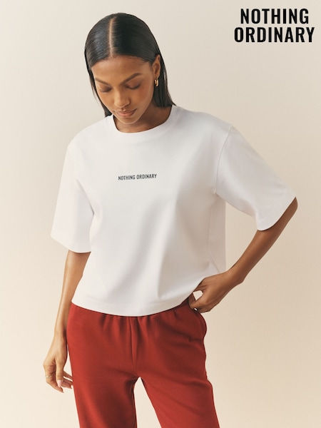 Nothing Ordinary White Printed Logo Heavyweight Pure Cotton Boxy T-Shirt