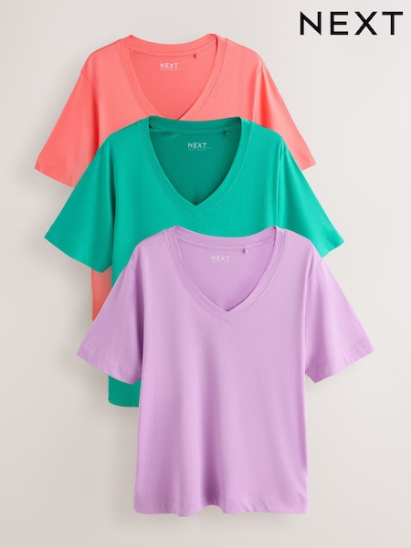 Green/Orange/Purple Cap Sleeve Cotton T-Shirts 3 Pack