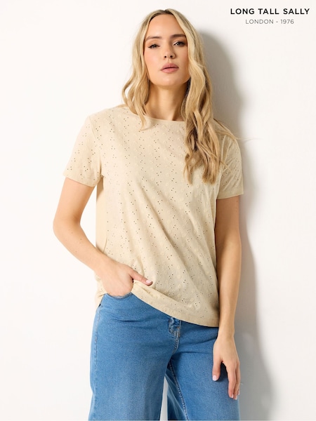 Long Tall Sally Cream Broidery Short Sleeve T-Shirt