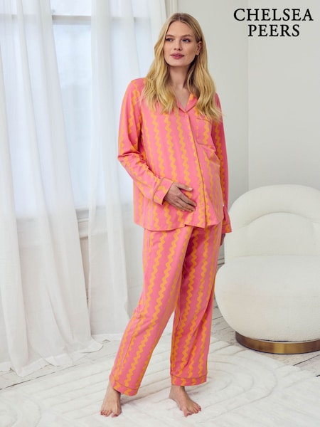 Chelsea Peers Yellow Maternity Sunset Wavy Stripe Print Long Pyjamas Set