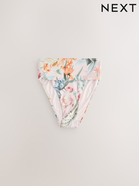 Pink Floral High Waist High Leg Roll Top Bikini Bottoms