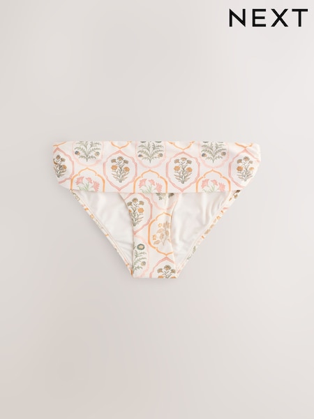 Ecru/Peach Floral Roll Top Bikini Bottoms